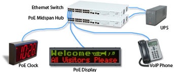 - PoE allows for centralized UPS backup, which will allow the clocks and other Ethernet-powered devices to operate even through a power failure.