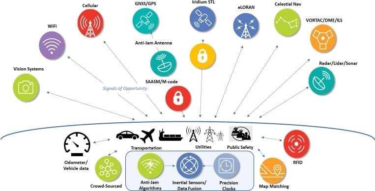 No other PNT source, however, is foolproof. Each has its own strengths and weaknesses. Therefore, the best strategy is to use multiple, diverse PNT sources together – sources that have different failure modes and characteristics so that the vulnerabilities of one source are counteracted by the strengths of another. Algorithms exist that can intelligently select and combine various PNT sources into a composite solution.